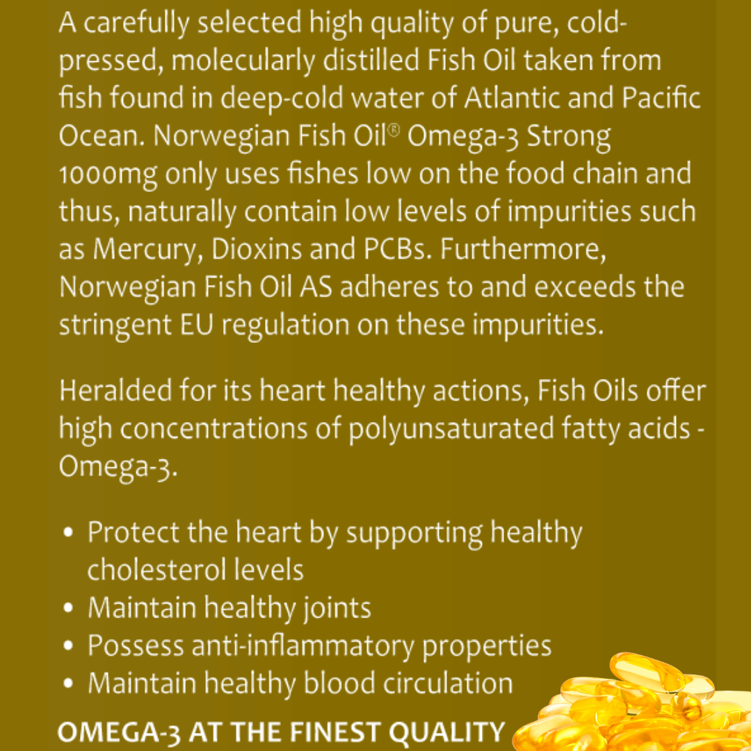 Omega-3 provides many health benefits including cholesterol, heart, brain and vision etc. However, most people do not ingest enough Omega-3 oil in their daily diet. Hence, Omega-3 supplementation is necessary.